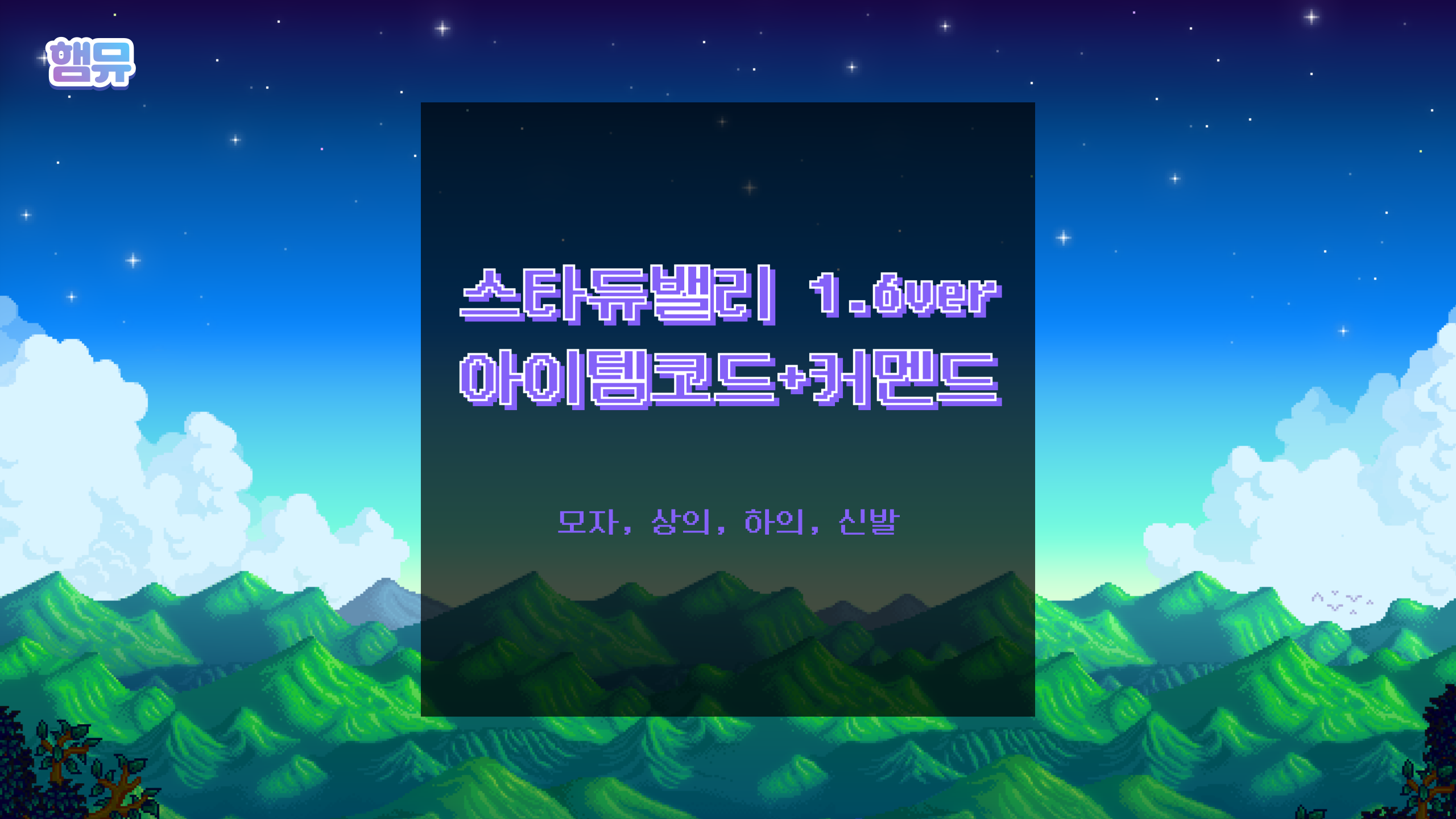 스타듀밸리 아이템코드 + 커멘드 (1.6 ver) - 모자, 상의, 하의, 신발